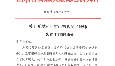 各有关单位:为贯彻落实山东省委、省政府《山东省质量强省建设纲要》,紧密围绕实施质量强省和人才强省战略,加快食品品评人才队伍建设,提升食品质量水平,促进全省食品产业高质量发展。经研究,组织开展2024年山东