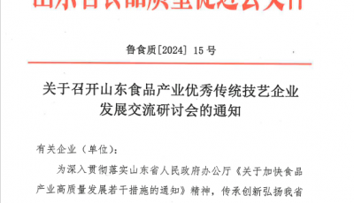 有关企业(单位):为深入贯彻落实山东省人民政府办公厅《关于加快食品产业高质量发展若干措施的通知》精神,传承创新弘扬我省食品产业优秀传统技艺,推进我省食品产业高质量发展,经研究定于2024年11月25日-26日在济南