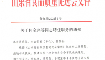 各会员单位,本会部室(中心)、委员会:根据《山东省食品质量促进会章程》规定和工作需要,经秘书长提议,提请二届一次会长办公会审议表决通过,聘任何金兴、张仁堂、王延圣、卞璨慧等4名同志为第二届理事会副秘书长,