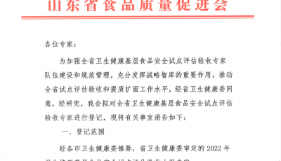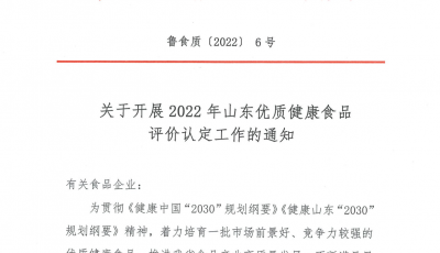 关于开展2022年山东优质健康食品评价认定工作的通知有关食品企业:为贯彻《健康中国“2030”规划纲要》《健康山东“2030”规划纲要》精神,着力培育一批市场前景好、竞争力较强的优质健康食品,推进我省食品产业高质