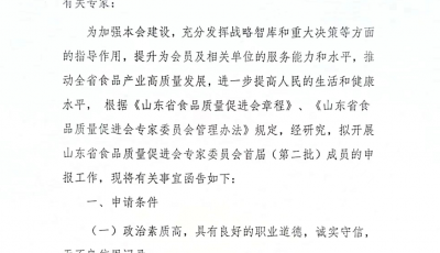 有关专家:为加强本会建设,充分发挥战略智库和重大决策等方面的指导作用,提升为会员及相关单位的服务能力和水平,推动全省食品产业高质量发展,进一步提高人民的生活和健康水平, 根据《山东省食品质量促进会章程