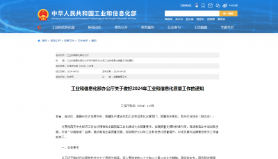 工业和信息化部办公厅关于做好2024年工业和信息化质量工作的通知工信厅科函〔2024〕113号各省、自治区、直辖市及计划单列市、新疆生产建设兵团工业和信息化主管部门,部属有关单位,有关行业协会(联合会):为贯彻