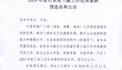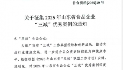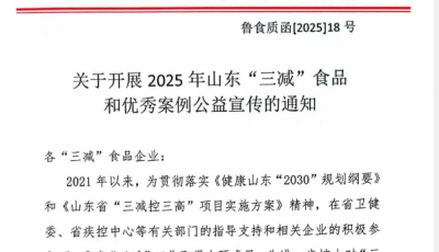 各“三减”食品企业:为推广我省“三减”工作典型经验和创新成果,推动食品行业健康发展,进一步提升公众疾病防控能力和健康水平,根据根据《2025年山东省“三减”联盟工作计划》安排:经研究,对2024年山东省食品企业