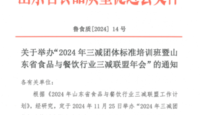 各有关单位:根据《2024年山东省食品与餐饮行业三减联盟工作计划》,经研究,定于2024年11月25日举办“2024年三减团体标准培训班暨山东省食品与餐饮行业三减联盟年会”,现将有关事项通知如下:一、会议时间及地点1、