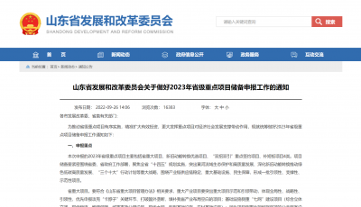 山东省发展和改革委员会关于做好2023年省级重点项目储备申报工作的通知各市发展改革委、省直有关部门:为推动省级重点项目有序实施,精准扩大有效投资,更大发挥重点项目对经济社会发展支撑带动作用,现就统筹做好20