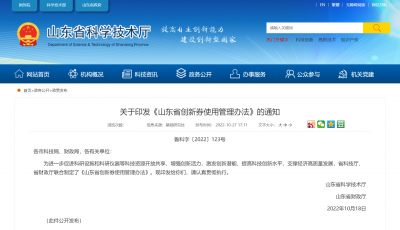 关于印发《山东省创新券使用管理办法》的通知鲁科字〔2022〕123号各市科技局、财政局,各有关单位:为进一步促进科研设施和科研仪器等科技资源开放共享,增强创新活力,激发创新潜能,提高科技创新水平,支撑经济高